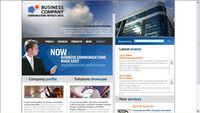 Phone company's Web site page layout template