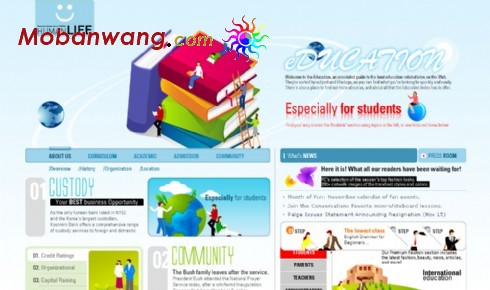 Web page templates educational institutions
