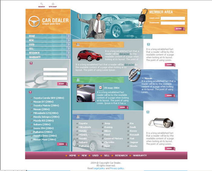 Brand car sales company Web site page template business