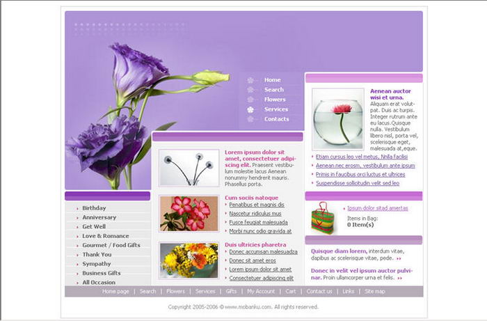 Romantic purple fashion website template
