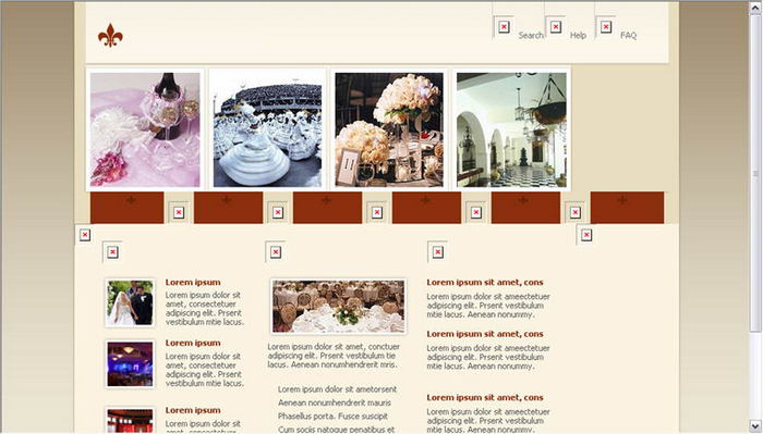 Major receptions, events planning company's Web site layout